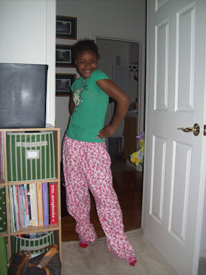 Well it's spring break time, so I had my grands for about 7 days, they are back home for the weekend. So my GD wanted to learn how to sew, she made a pair of pj bottom. She was so proud of herself here are a few picture. Thanks for popping in.
